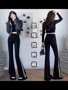 微喇喇叭裤女外穿秋季薄款大码胖妹妹高腰显瘦提臀紧身瑜伽休闲裤