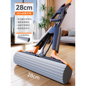 海绵拖把家用一拖净卫生间专用对折式超强吸水胶棉拖布地拖