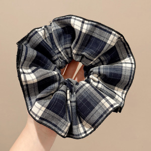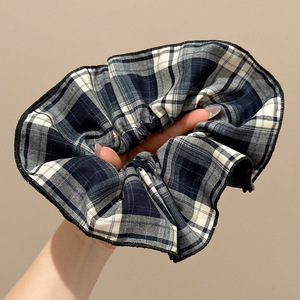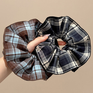 深色系格纹大肠发圈女2025新款学院风复古百搭头绳高弹力皮筋发绳