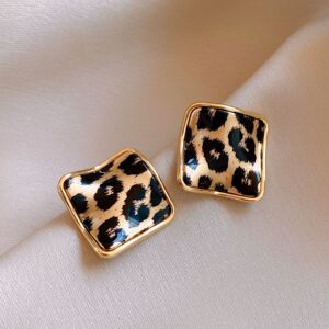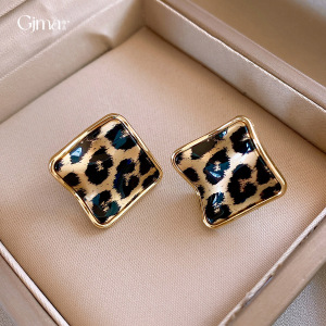 14k真金电镀银针褶皱菱形豹纹耳环轻奢高级感耳钉复古百搭耳饰女