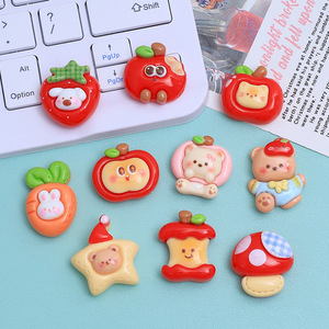 卡通苹果小熊可爱手工diy饰品配件洞洞鞋扣材料奶油胶树脂小配件