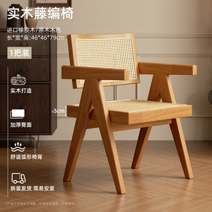 实木餐椅民宿酒店椅子咖啡店网红款昌迪加尔椅商用有扶手椅靠背椅