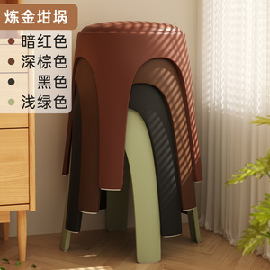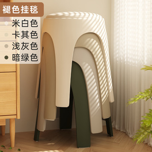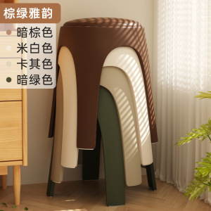三梦塑料凳子家用加厚可叠放软包圆凳餐桌备用高板凳中古简约椅子