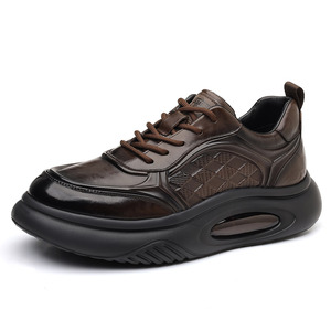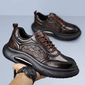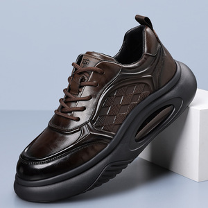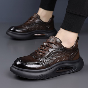 头层牛皮新款男士休闲板鞋轻便厚底增高运动鞋男真皮百搭时尚潮鞋