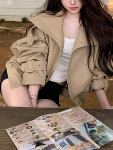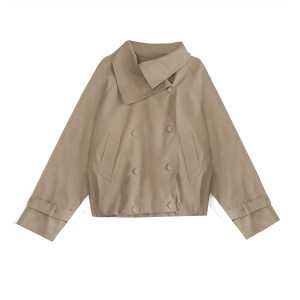 Ac*e25早秋新款双排扣美拉德色系立领短款风衣英伦风夹克女外套