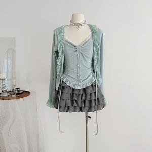 甜辣妹蕾丝开衫蝴蝶结吊带背心女早秋蓬蓬蛋糕裙套装2025新款