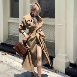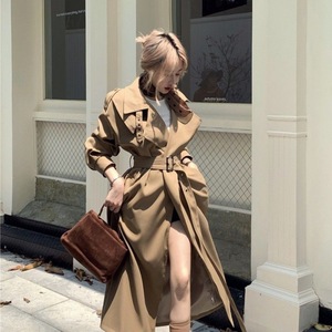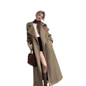 复古英伦风翻领风衣外套女秋季感宽松中长款休闲气质过膝大衣