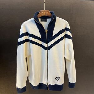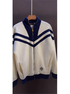 2025年美式休闲风秋冬新款条纹拼接高领撞色上衣ins男款开衫外套
