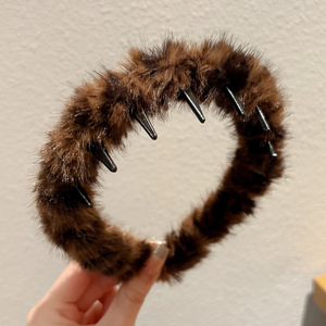 秋冬款豹纹毛绒发箍女高级感高颅顶发旅头箍显脸小不勒头发卡头饰