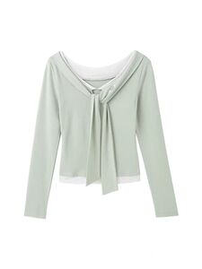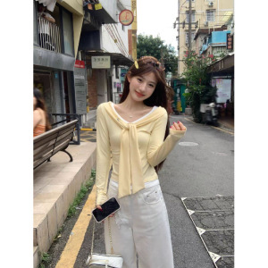 2025秋季韩版纯欲修身短款新式韩风披肩纽扣设计修身长袖T恤上衣