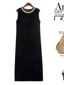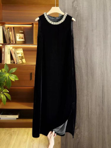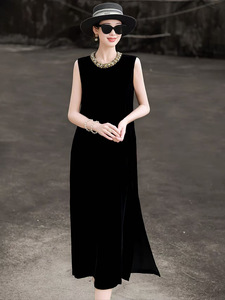 2025秋装高品质重工款真丝绒无袖背心连衣裙女装裙子0915-158