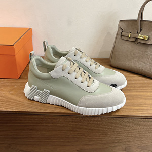 2025早春新款真皮系带H家时尚休闲运动鞋男女百搭平底跑步鞋情侣