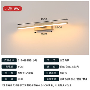 壁灯化妆灯洗手间浴室卫生间北欧浴室镜柜镜子灯壁灯LED镜前灯