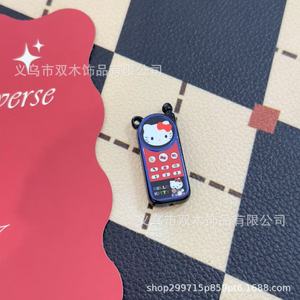 18*40mm印花KT猫大哥大手机三通串珠 diy手链手机链包挂车挂配件