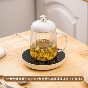 奶黄色慢炖养生加热垫+专用养生高硼硅玻璃杯(可煮沸)