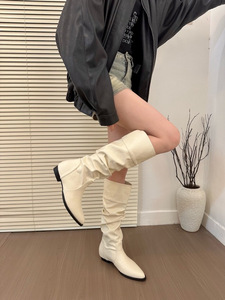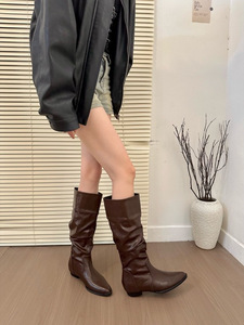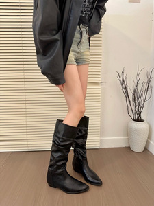 北岛千金!韩版三穿尖头内增高堆堆靴女秋冬褶皱平底长靴