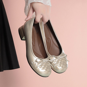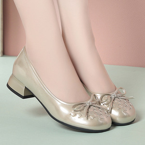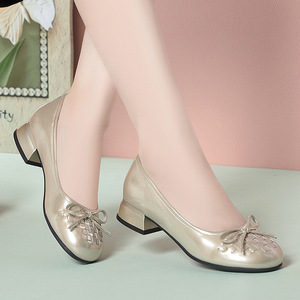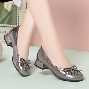 一件代发秋季妈妈鞋皮鞋软底舒适单鞋中老年浅口蝴蝶结女鞋一脚蹬