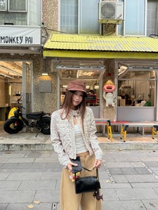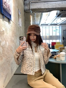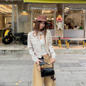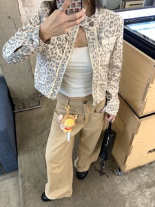 '豹纹限定'小众做旧定染豹纹印花立领外套女秋