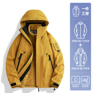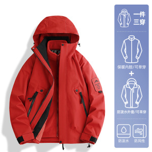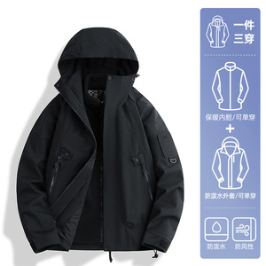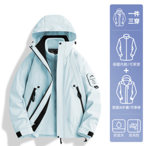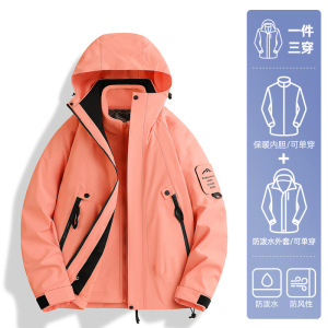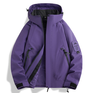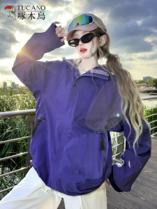 啄木鸟紫色冲锋衣女男新款春秋户外防风三合一超好看运动穿搭外套