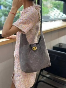 一件代发2025新款嬉皮包小香风菱格链条单肩hobo水桶包女潮腋下包