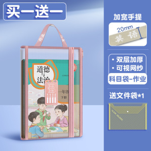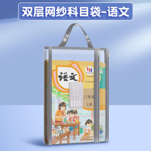 大号双层网纱科目袋复古配色文件袋学生网纱透明大容量学习收纳袋
