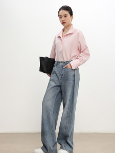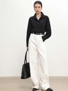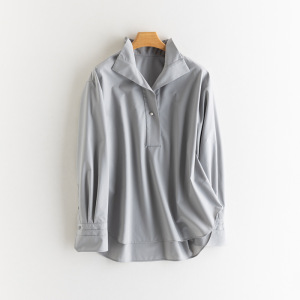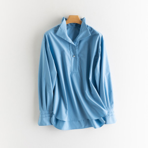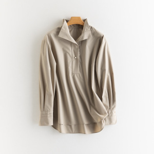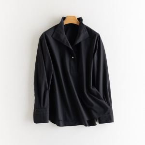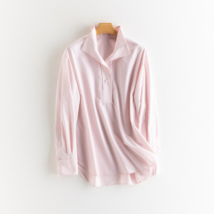25秋季新款女装珍珠钮扣套头衬衫免烫宽松遮肉风情上衣衬衣外套