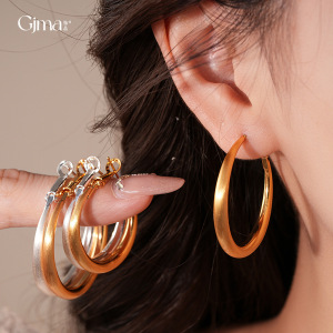 欧美气质拉丝圆形磨砂耳环轻奢高级感耳圈时尚简约耳饰设计感小众