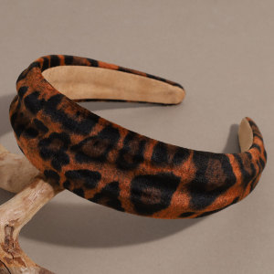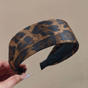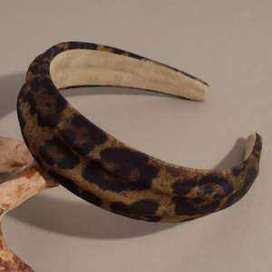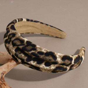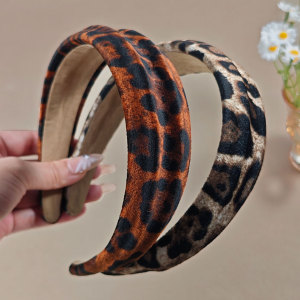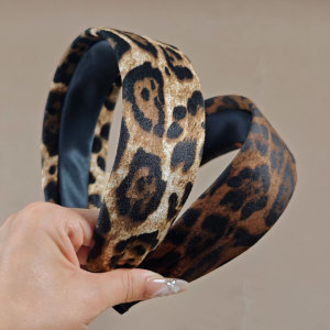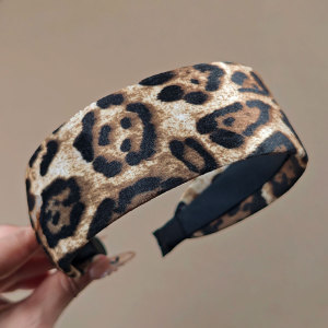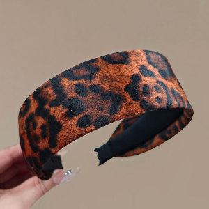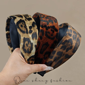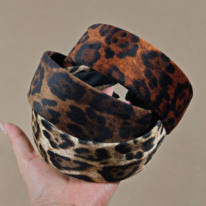 跨境新款豹纹绒面宽边发箍秋冬复古百搭头箍时尚高颅顶压发卡发饰