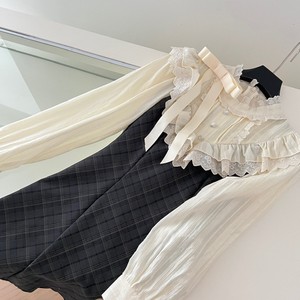 少女感复古格纹连衣裙千金裙拼蕾丝收腰气质小裙子女秋2025秋季新