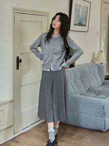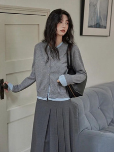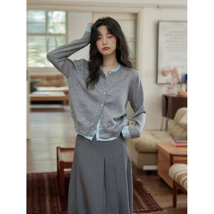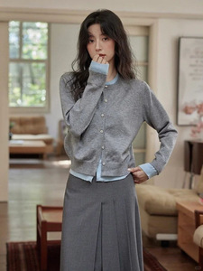 针织衫女秋冬2025新款气质设计感撞色拼接假两件宽松长袖开衫外套