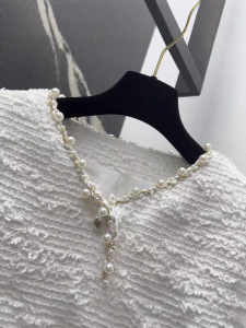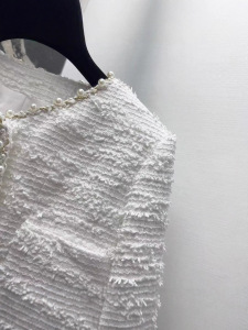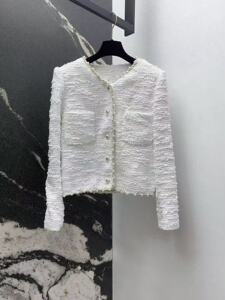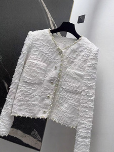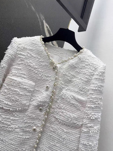 2025早秋新款小香风重工珍珠纽扣排扣V领羊毛粗花毛呢外套女上衣