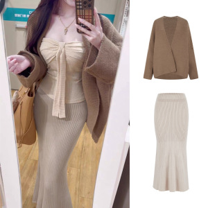 MosesQueen/魔西女王秋冬款高腰针织a字包臀裙法式气质鱼尾中长裙