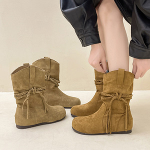 绑带个性马丁靴子2025秋冬新款小众欧美气质复古百搭圆头中筒靴女