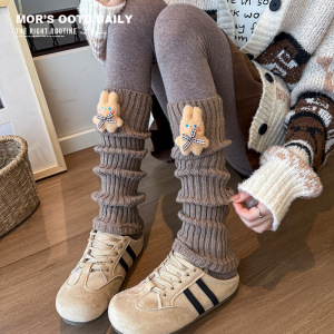 靴尚棉袜套女立体玩偶针织堆堆袜洛丽塔秋冬保暖甜美小熊少女腿套