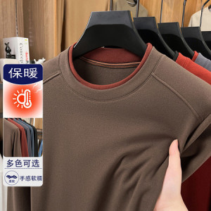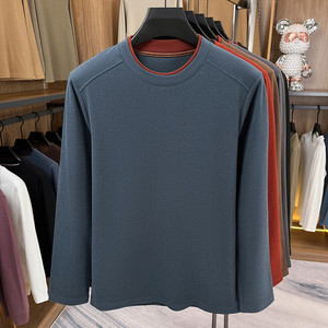 新款德绒圆领长袖T恤男士休闲纯色潮流百搭中青年打底衫卫衣t男装