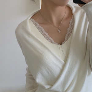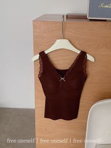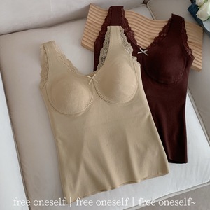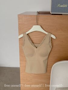 1727#秋冬新款内搭V领羊绒蕾丝保暖带胸垫打底一体式背心女
