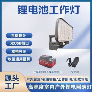 手提式户外锂电池照明灯牧田锂电池充电宝工地户外照明应急灯批发