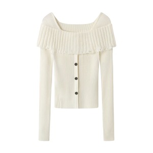 现货2025秋季新款气质法式修身一字领露肩拼接针织衫女RL71501136