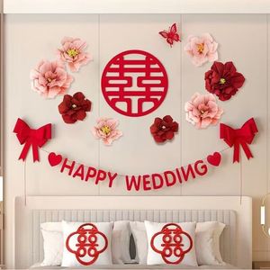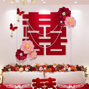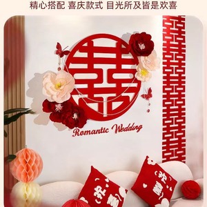 婚房褶皱花立体皱纹花装饰新房床头卧室背景墙布置结婚婚庆用品