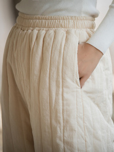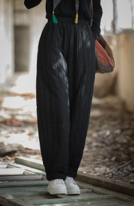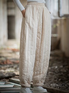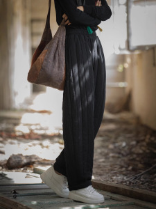 冬款新款裤子复古条纹显瘦百搭夹棉休闲裤棉麻加厚保暖棉裤女外穿