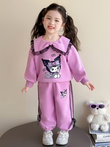 女童库洛米休闲套装春秋装2025新款儿童装宝宝卡通翻领卫衣两件套