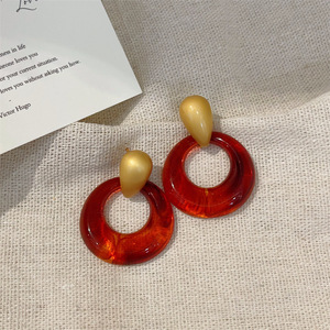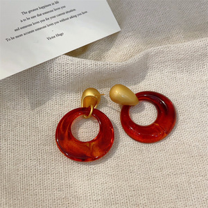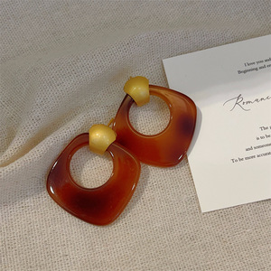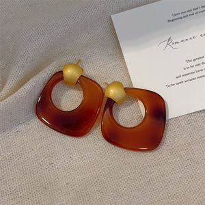 复古美拉德醋酸哑金几何形耳坠简约耳扣电镀18K真金时尚百搭耳饰