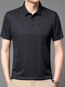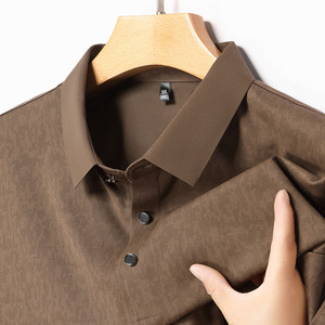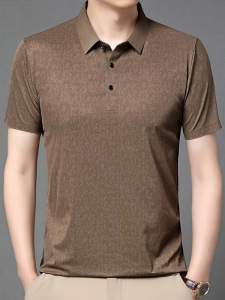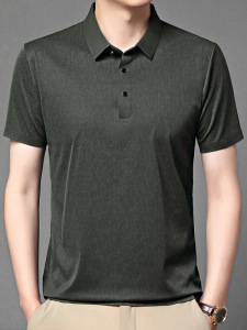 爆款冰丝短袖t恤男翻领夏装中年商务休闲polo衫冰爽衬衫领上衣薄