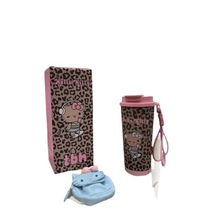 新款双饮野兽派咖啡杯豹纹车载大容量吸管不锈钢随批发包批发包邮
