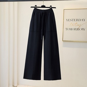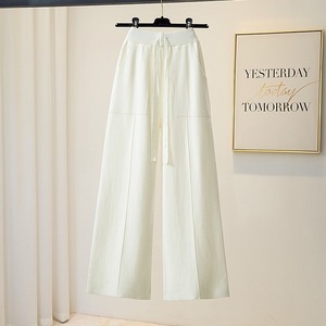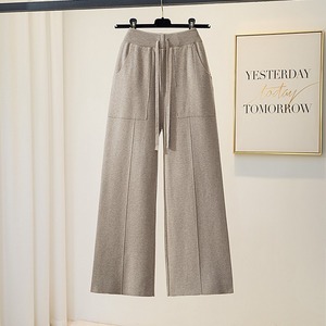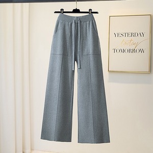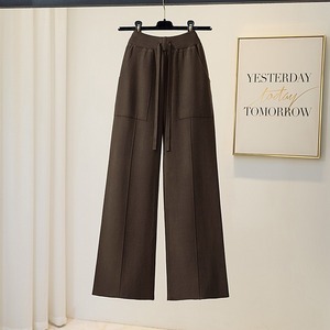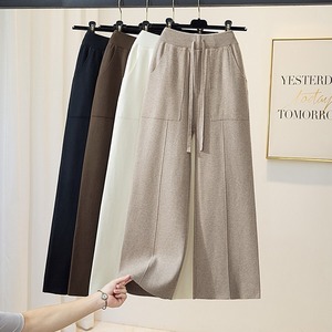 2025松紧高腰纯色口袋针织阔腿裤女秋冬季新款休闲垂感直筒毛线裤