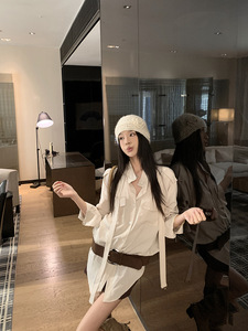 设计感飘带宽松长袖衬衫女装2025秋季新款小众宽松显瘦中长款上衣