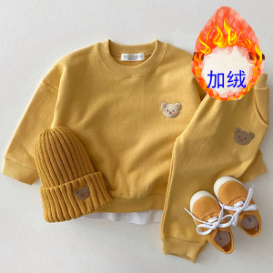 新款春秋冬男女童宝宝加绒卫衣裤子套装中小童洋气上衣长裤两耐用