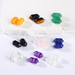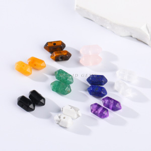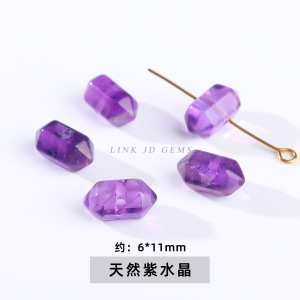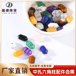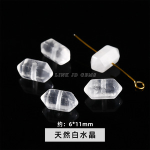 晶德珠宝 天然水晶玉石中孔六角柱单颗合集手工diy饰品配件半成品