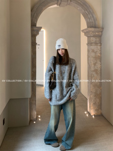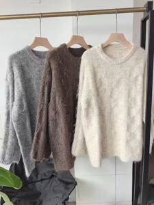 2025秋冬新松弛雾感立体编织宽松休闲圆领毛衣亲肤慵懒针织上衣女