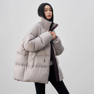 2025年冬新款羽绒服女90白鸭绒韩版时尚休闲针织领宽松保暖外套潮